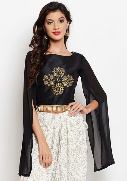 Semi-Dupion Block Printed Long Sleeve Readymade blouse