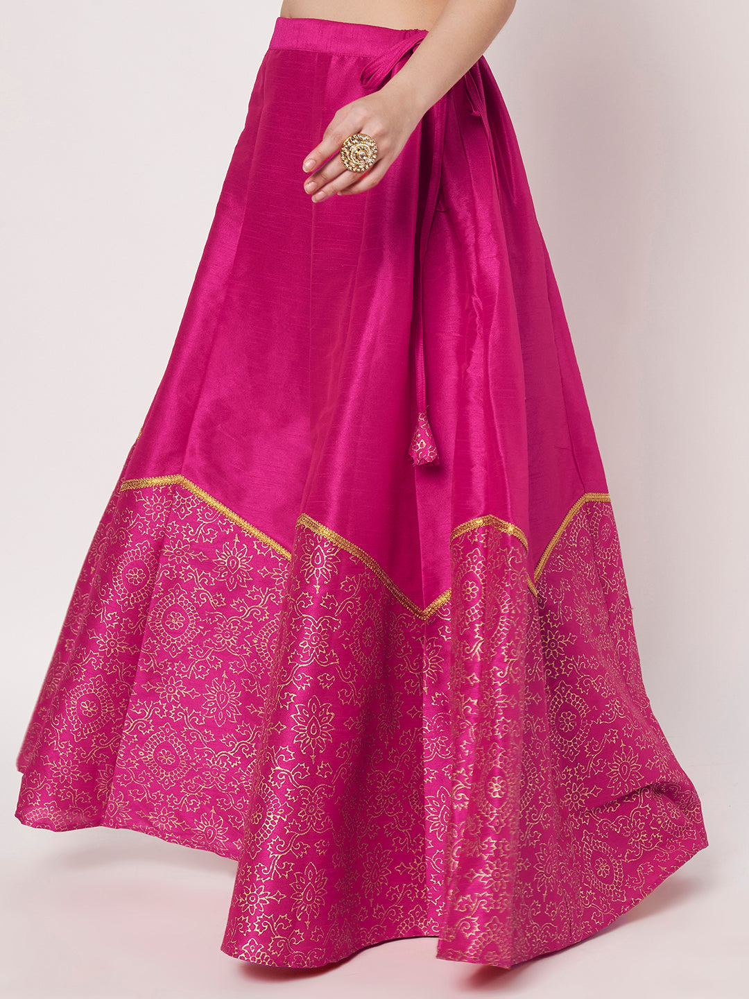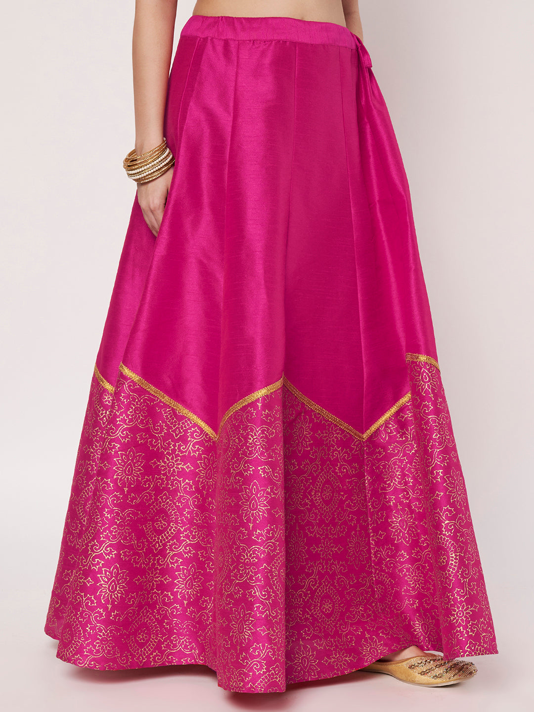 Dupion Block Printed Half And Half Kalidaar Skirt