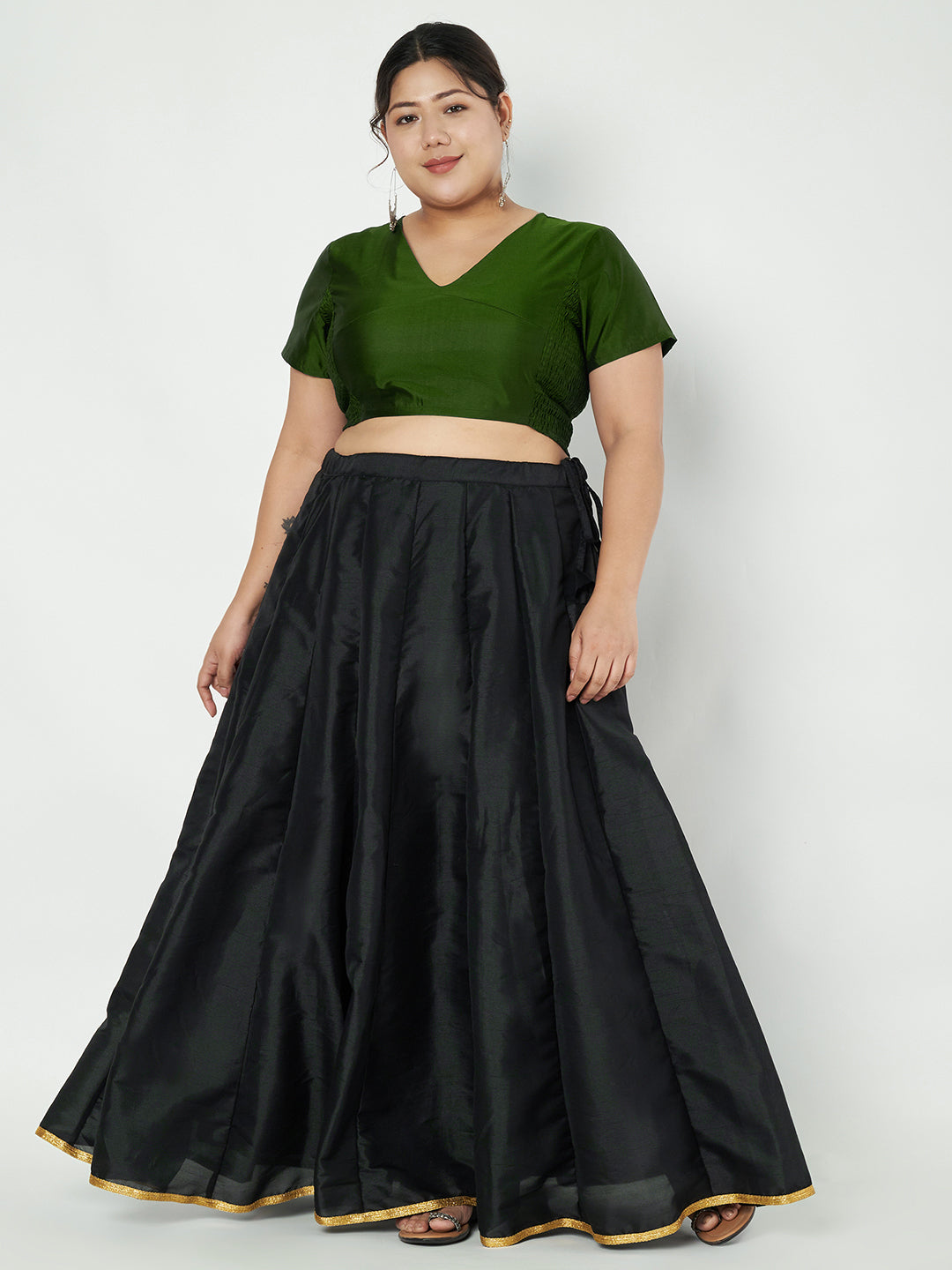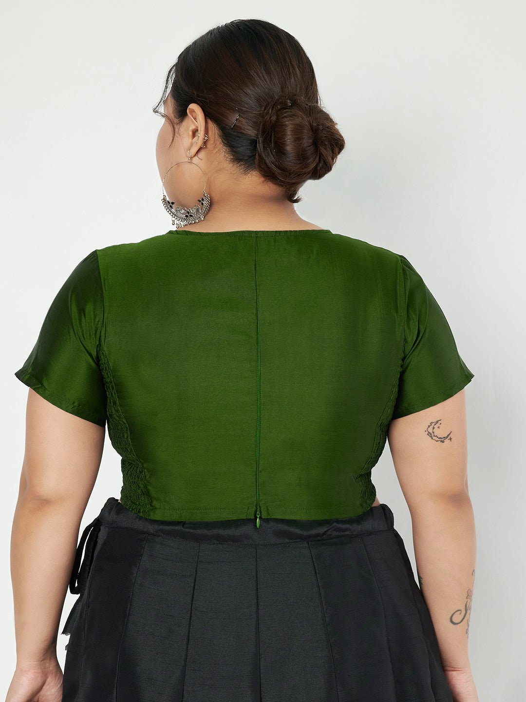 Make a style statement with this Blouse. This versatile Blouse is made from silk blend fabric, has a V neckline, short sleeves and it comes with smocking on the sides for a comfortable fit. Tailored for an easy fit, this Blouse comes with lining and a back zipper. Team it up with a lehenga skirt for that perfect festive look.