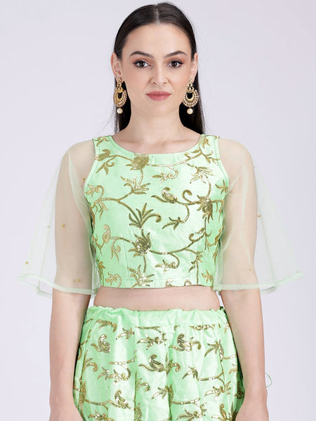 Net Sequin Embroidered Sheer Sleeves Readymade blouse